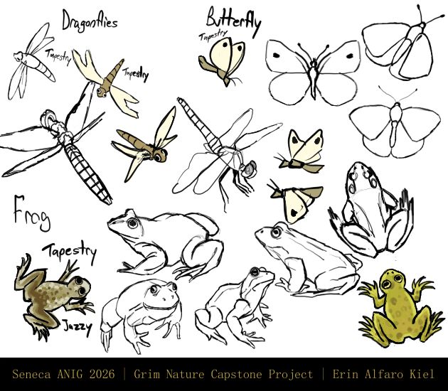 Simple week this time, was working on research and studying the art style. I have most things fairly figured out for the plan now, when before a lot felt a little open-ended. I know how I will execute my ideas now, so now it's just about jumping right in an problem solve as things pop up from doing it myself from there. Here's some concept art for the critter sprites. They will be 2D sprites that are 2D animated in my 3D environment. That will be fun. These concept drawings will be good for getting started in testing out 2D sprites in a 3D environment. I still need to figure out how to get epic games launcher to not keep me locked out of my account on my laptop. It's strange, since I didn't have my VPN turned on when it locked me out, hmmmm...